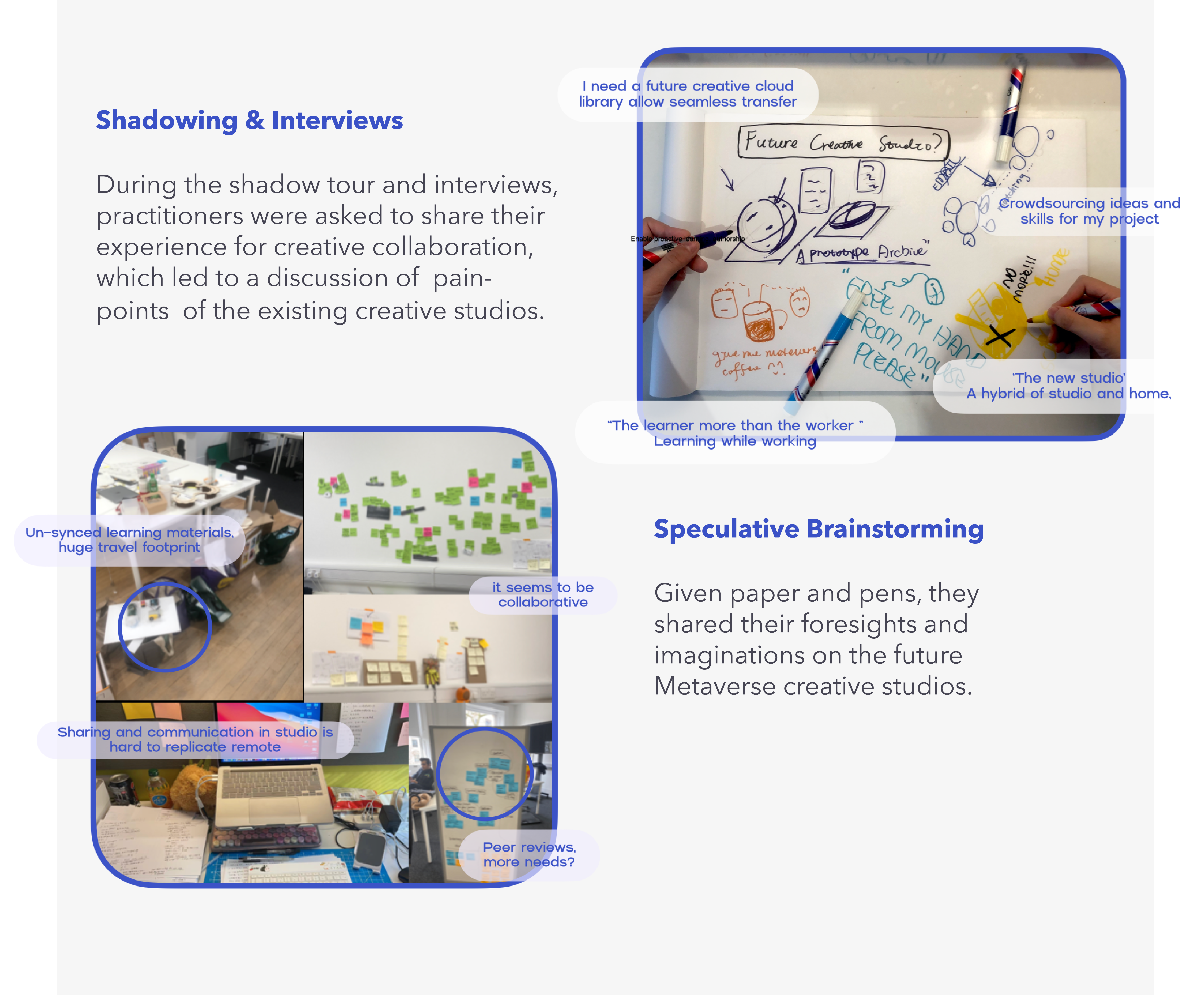 The primary research contextualized the notion of a 'future creative studio' through a variety of research methods. A combination of trend research, expert interview, and workshop with creators were carried out to explore:
